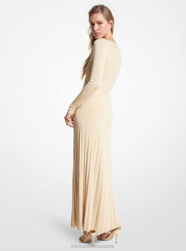 täytä draama tässä retrohenkisessä resorimaximekossa. Se on valmistettu monimutkaisesti metallista joustavasta neuloksesta, ja se on leikattu vartaloa halaavaksi siluetiksi, ja siinä on houkuttelevia leikkausyksityiskohtia renkaaksi kootun rinnan alla. muotoile se kullatuilla sandaaleilla saadaksesi päätä kääntävän ilmeen.