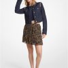 tämä minihame on valmistettu runsaasti joustamalla, joka muotoilee ja tasoittaa runkoa. neulotaan klassisella raidakuviolla, siinä on joustava vyötärönauha ja koristeelliset napit, joihin on kaiverrettu merkin tunnus. luo moderni 3-osainen setti yhteensopivilla metalliseoksilla.