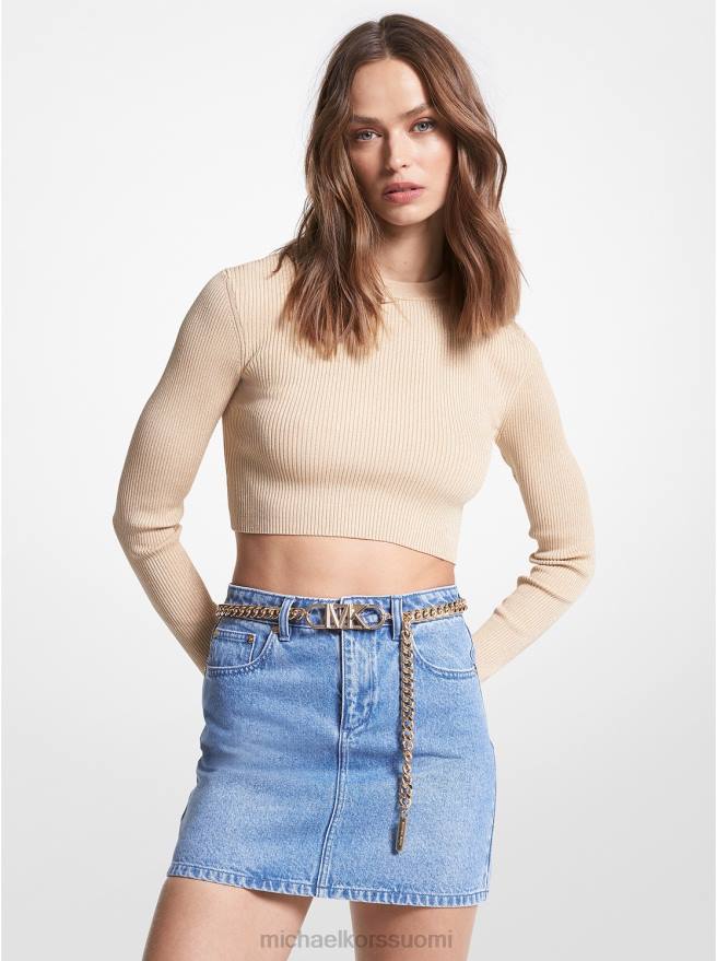 neulo metallilangoilla. Tämä pyöreäpäällinen toppi on yhtä mukava kuin monipuolinen. siinä on hieman lyhennetty helma, joka sopii hyvin räätälöityjen housujen ja naisellisten hameiden kanssa. luota meihin, se pyörii säännöllisesti kaapissasi.