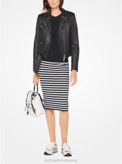 rakkauden ikuisesti välttämätön, tämä nahkainen mototakki on korostettu olkapäillä, vetoketjullisilla hihansuilla ja vyöhelmalla, jotka luovat vintage-tunnelmaa. tämä luonnostaan ärtyisä tyyli näyttää erityisen siistiltä bodycon-mekon ja korkokenkien kanssa.