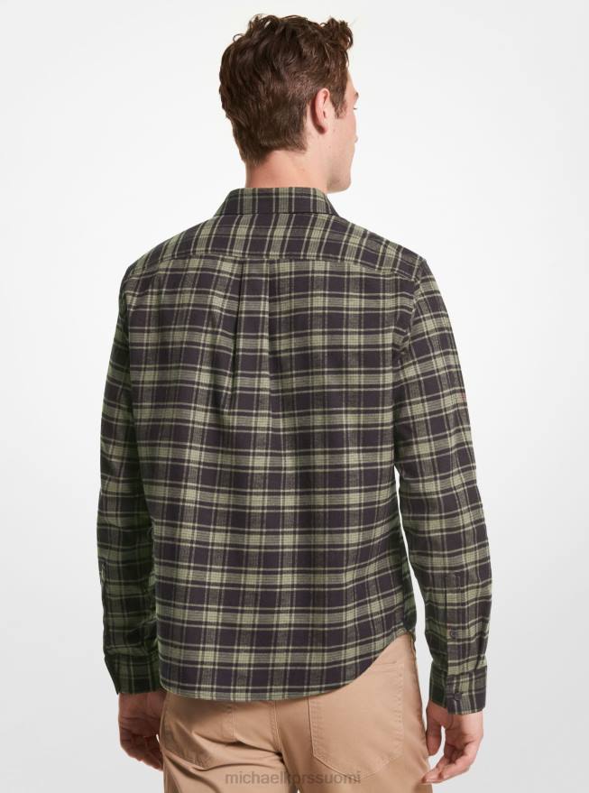 ruudullinen flanellipaita on sellainen vaatekaappi, joka ei koskaan mene pois muodista. Tämä kapea versio on räätälöity puuvillasta ja se voidaan muotoilla farkuilla tai housuilla. käytä sitä napitettuna terävään kaulukseen asti tai jätä muutama tekemättä saadaksesi rento ilme.