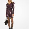 kaikkialla oleva liukuva mekko muotoillaan uudelleen läpikattoisilla paljeteilla. Se on valmistettu kierrätetyn georgetin ja muiden kuitujen sekoituksesta kevyen tunteen saamiseksi. Se on koristeltu naisellisilla pitsillä v-pääntiessä ja laskeutuu röyhelteiseen helmaan. viimeistele look bleiserillä ja saappailla.