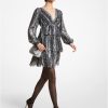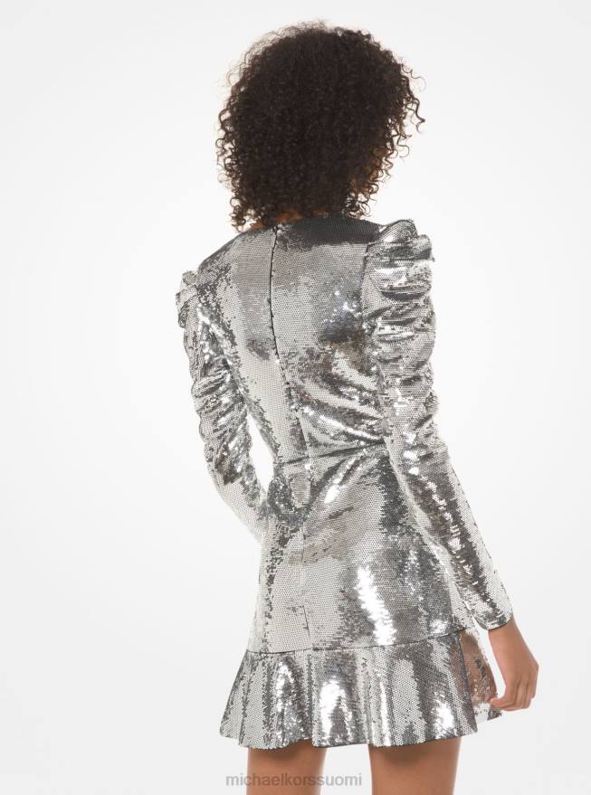 hohtelevat paljetit, rypytetyt hihat ja röyhelö helma tekevät tästä mekosta upean. Täydellisen pariliitoksen saamiseksi käytä omaasi metallisten pumppujen ja nastoitettujen käsilaukun kanssa.