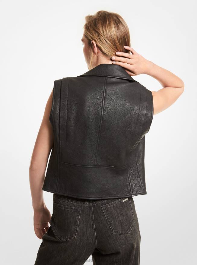 vahva ja ylellisyyttä varten uusittu kausi. Tässä moto-vaikutteisessa liivissä on epäsymmetrinen etuosa ja metalliosat, jotka tekevät siitä klassisen, sekä pikkukivinahkatyötä hienostuneen viimeistelyn takaamiseksi. kerrostele se hienojen neuleiden ja t-paiden päälle.