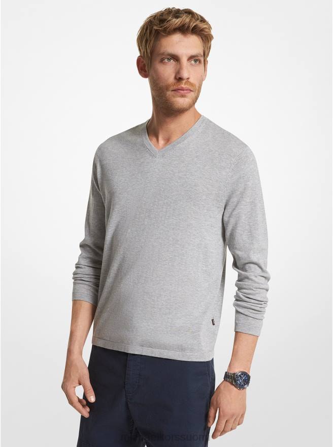 vaatetus Michael Kors puuvillajersey-pusero v-pääntiellä kanervanharmaa miehet Z6823039