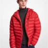 vettä hylkivä nailonkuori, tämä tikattu rialto-puffer-takki on täytetty 100 % kierrätetyllä polyesterilla lisäämään lämpöä. benji-huppu viimeistelee sen käytännöllisesti.