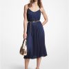 valmistettu viskoosin ja silkin sekoitusgeorgettesta. Tämä reipas paitamekko herää eloon graafisella ilmeellämme perinteistä ketjupainatusta. metallinen vyö luo tarkkuuden kehyksesi pienimpään kohtaan, kun taas kullanväriset painikkeet viimeistelevät lumoavan.