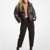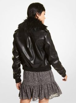 perinteisten utilitarististen siluettien inspiroima keinonahkainen lentotakki on fiksu valinta moton sijaan. epauletit olkapäillä ja tekoturkiskaulus ovat ylellisiä yksityiskohtia, jotka viimeistelevät tämän lookin. rinnasta sen rento istuvuus flirttailevan hameen kanssa.