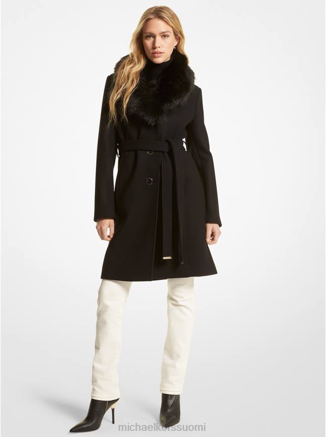 joka on keinoturkisreunus, ja tämä villasekoitettakki tuo ylellistä ilmettä mihin tahansa kokonaisuuteen. sen rennossa siluetissa on nappikiinnitys edessä ja vyö, joka määrittelee vyötäröä. muhkea kaulus on irrotettavissa, kun haluat hillitymmän ilmeen. pue tätä ajatonta naulakkoa kaiken päälle raikkaista denimistä kelluviin mekkoihin.