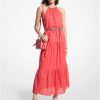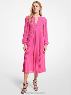 Graafinen otosmme perinteisestä ketjulenkkiprintistä lisää tähän flirttailevaan midi-mekoon modernia vetovoimaa. Leikkaus syvällä v-pääntiellä, räpyttelevillä hihoilla ja leikkauksilla vyötäröllä. Se on tyylikäs valinta illanviettoon yhdistettynä olkapäihin ja kirjekuorilaukkuun.