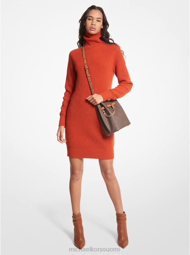 pysy lämpimänä ja näytä tyylikkäältä tässä resorimekossa, joka on kehrätty ylellisestä villan ja kashmirin sekoituksesta. Suunniteltu hieman löysäksi siluetiksi, siinä on mukava villapaita ja polvien yläpuolelle laskeva helma. Pidä loput tyylistä yksinkertaisena mutta modernina nahkaisella käsilaukulla ja saappailla.