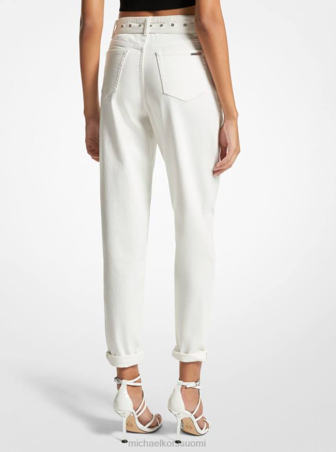 puuvilladenimistä valmistetut farkut, joissa on hieman joustavuutta. Näissä farkuissa on laskokset edessä 90-luvun lopun inspiroimaan ilmeeseen. Sen läpimittaiset vyöt lisäävät vaivattomasti viileää utilitaristisuutta. jatka tunnelmaa logoisella t-paidalla ja liukusandaaleilla.