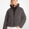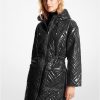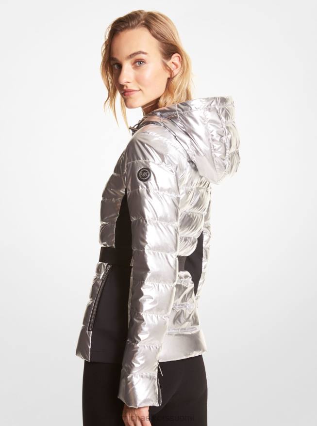 yksi tyylikkäimmistä päällysvaatteista tällä hetkellä. Tässä tyylikkäässä puffitakissa on tikattu metallinen kuori, joka on täytetty untuvalla lämmittääkseen. vaihdettava huppu ja vetoketjulliset taskut lisäävät sen käytettävyyttä, kun taas vyö kiristää vyötäröä. kerro omasi lämpimien pohjakerrosten päälle.